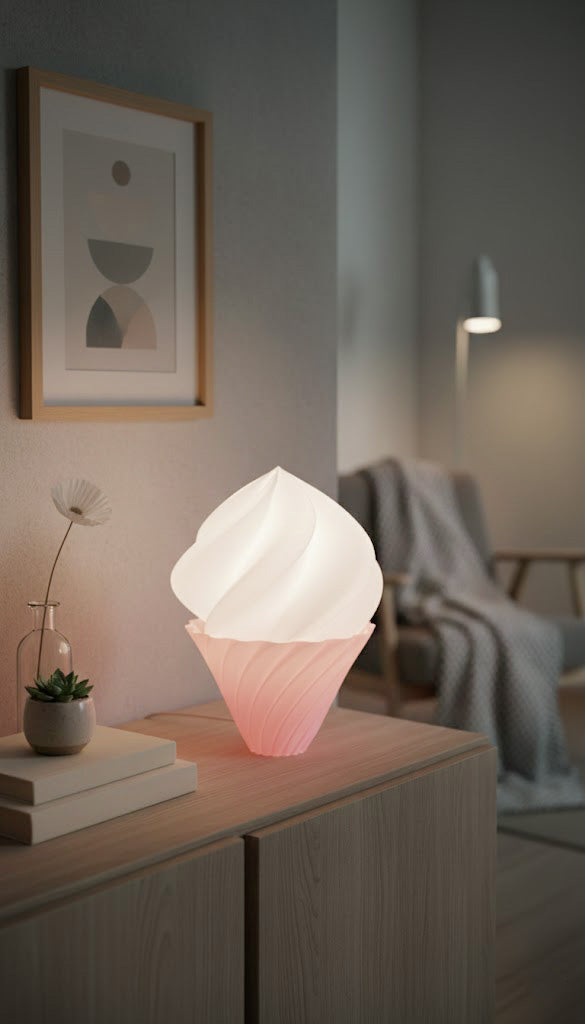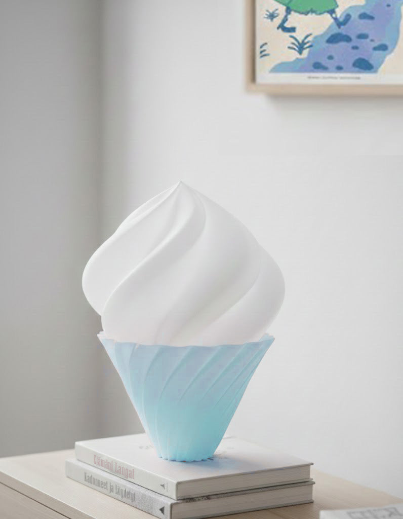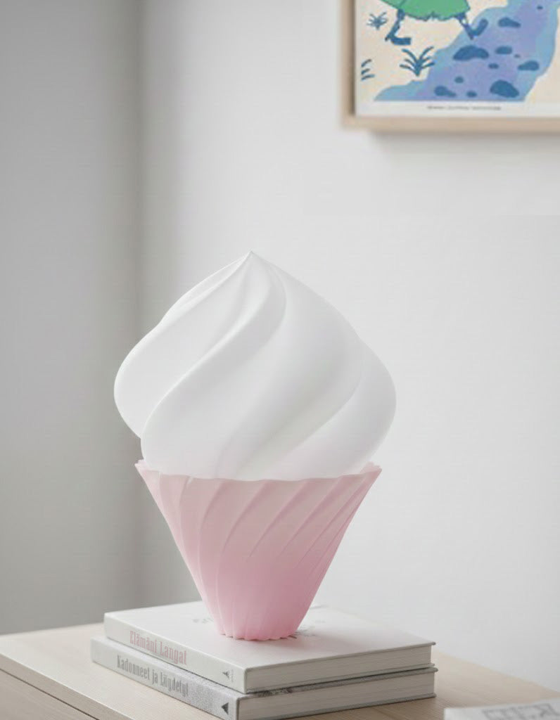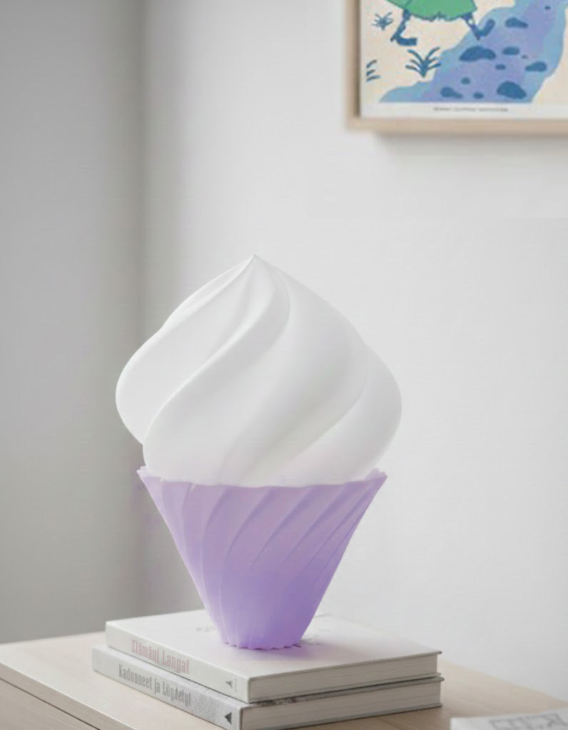 Bring a playful touch of modern elegance to your space with the soft serve table lamp called Pehmis. The design is inspired by the gentle swirls of soft-serve ice cream. Its softly diffused light and playful design makes it great for spaces of relaxation and creativity